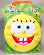 Sponge Bob のフリスビー (O0218) 直径約25cm。笛が幾つか埋め込んであるので投げると音が鳴ります。結構柔らかい素材で出来ています。 |