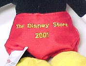 Disney社製 未発売ミッキーマウス おしりの所に”The Disney Store 2001”と書いてあります。未発売品です。タグの金額は$0.01となっています。 |