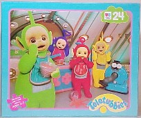 テレタビーズ パズル (O0602) 箱の横幅約25.5cm。3〜7歳用の24ピースです。完成は31.75cm X 38.1cmです。 |
