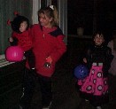 左上の二つは実家に帰る途中にあったかぼちゃ売り場です。ハローウィンの当日だったので数もかなり減っていましたが10月のはじめ頃からこういった場所がいたる所に出来ます。穴をあけて中にろうそくを入れたり、絵を書いたりして玄関などに沢山飾ってあります。右上は実家の向かいの家です。こった家はクモ巣をはったりガイコツをおいたりして飾り付けをしています。下の写真はうちに来た子供達の写真です。 |