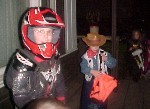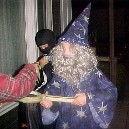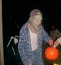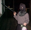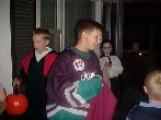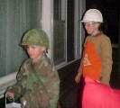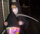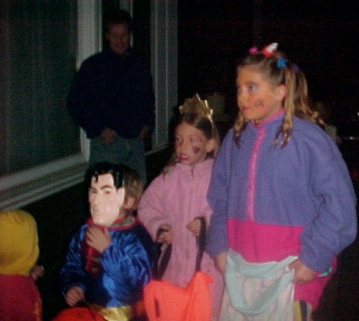 2000年10月31日のハローウィンは写真を撮るため実家に帰ってきました。一人暮しを始めて以来ハローウィンの日は働いていたり出かけていたりしたので僕にとっては6年ぶりのハローウィンで楽しかったです。31日の夕方6時になるとサイレンが鳴って子供達(どう見ても大人って人も中にはいますが)が仮装をしてお菓子をもらいに家を回り始め8時のサイレンでハローウィンは終わります。実家は小、中、高校の目の前にあるので(関係無いかな?)人通りも多く沢山の子供達が集まってきます。多い年には500人位の子供達がやってきます。僕達が子供の頃は親がお菓子を配ってもその分子供達がもらって来たのですが子供がみんな家を離れた今なぜうちの親はお菓子を配り続けるのだろう。。。と思う事がたまにあります(笑)母さん偉い!?。お菓子を配りたくない家は6時から8時の間家の電気を消してカギを閉めています。それでもしつこくドアをノックしてくる子供もいるようですが。僕の友達の家などは子供がいなくなって電気を消している所も沢山ありました。 |