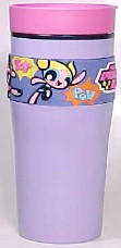 PPG 車用コップ (PPG0723) 高さ約18.5cm。上部のピンクの部分はフタです。模様の部分は立体的なゴムで出来ています。プラスティック製。頑丈に出来ています。 |
