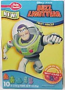 Buzz Fruit Sancks (SNC19) グミのようなお菓子です。箱の高さ約21cm。25.5g分入った小さなパックが10個入っています。 |