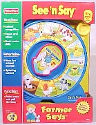 See'n Say (TS0613) 箱の高さ約28cm。真中の矢印を動物に合わせて右側のレバーを下ろすと泣き声が聞こえます。 |